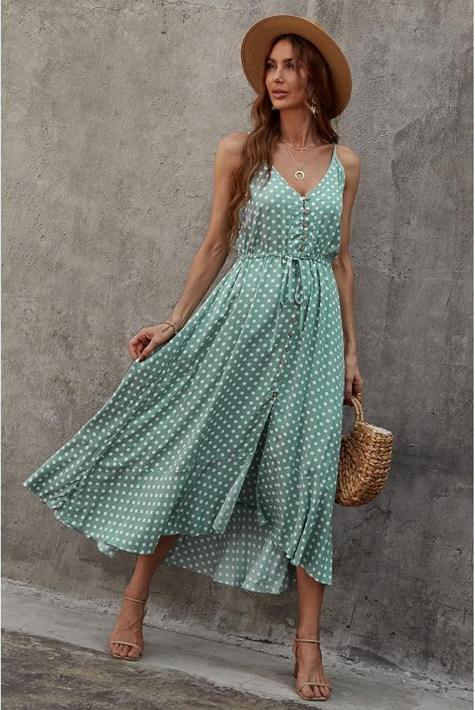 The BROVAVE Polka Dot Sundress is a dreamy option among summer dresses under $40. Lightweight, flowy, and full of boho flair, it features adjustable spaghetti straps and a V-neckline that flatters every figure. Whether you’re heading to brunch, a beach day, or a summer party, this midi dress keeps your look fresh and feminine.